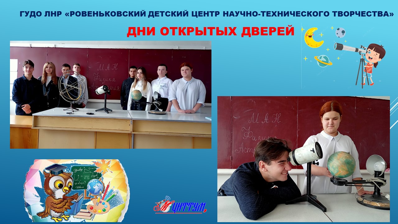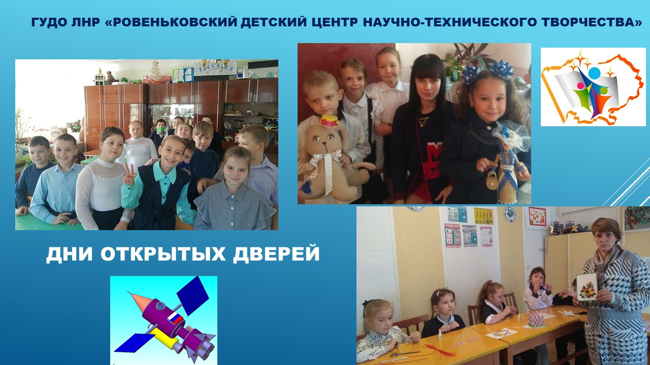 С 9 по 14 сентября 2022 года в ГУДО ЛНР "Ровеньковский детский центр научно-технического творчества для школьников города прошли Дни открытых дверей. Руководители кружков презентовали свои творческие объединения и секции МАН. Ребята посетили выставку фоторабот "Луганщина через объектив". Руководитель кружка "Волшебная бумага" Голощапова Т.В. провела мастер-класс по изготовлению игрушек из полосок бумаги. После пожелавшие смогли записаться в понравившиеся кружки.