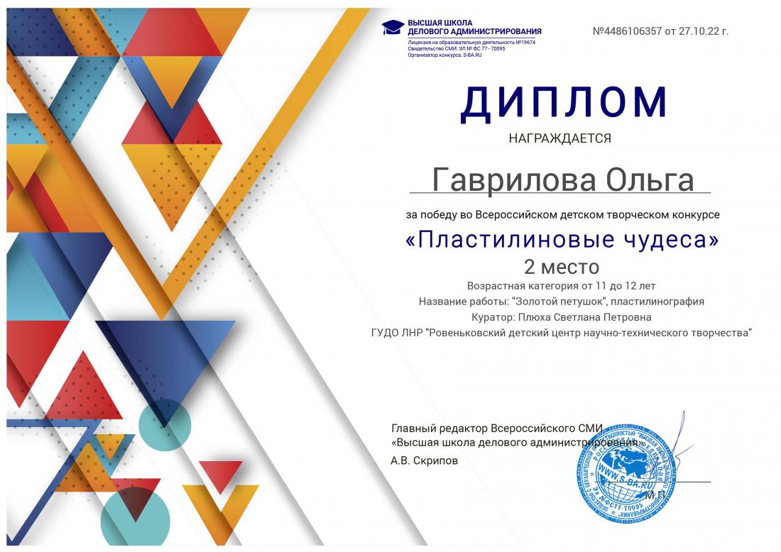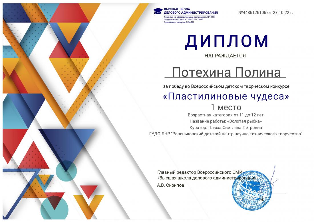 Подведены итоги всероссийского конкурса «Пластилиновые чудеса», проходившего с 21 по 26 октября 2022 года, организатором которого выступила Высшая школа делового администрирования (г. Екатеринбург, РФ).