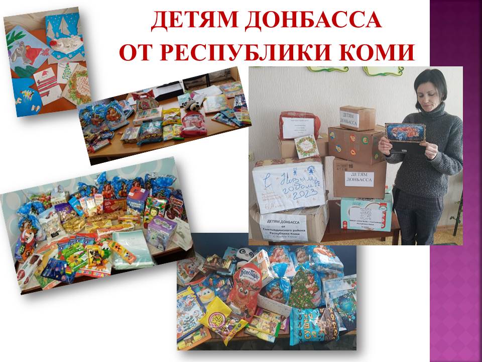 Совет женщин при Администрации города Ровеньки передал гуманитарную помощь со сладкими подарками, канцтоварами, игрушками, играми и открытками, изготовленными своими руками обучающимся учреждений дополнительного образования города Ровеньки от школьников г. Сыктывкара и други