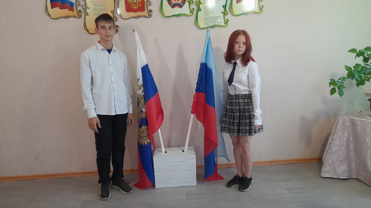 Начался праздник с торжественной церемонии вноса флагов Российской Федерации и Луганской Народной Республики и Гимнов. Далее к ребятам с теплыми словами и пожеланиями удачного нового 2023-2024 учебного года обратилась директор учреждения Васильева Вера Васильевна.
