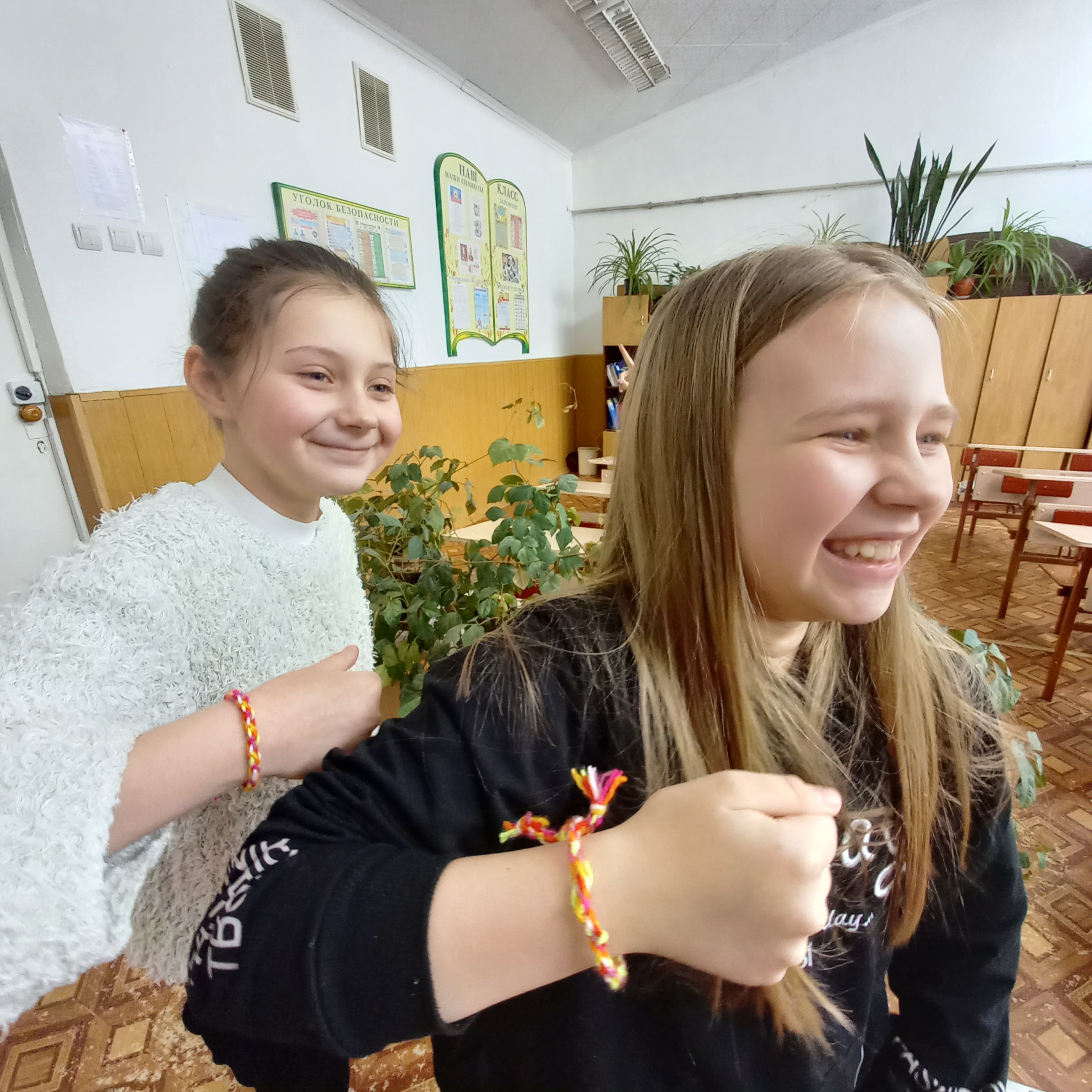 Мастер-класс прошел плодотворно, все дети в конце мероприятия держали в своих руках яркие, а главное, абсолютно разные по цвету и фактуре изделия. С задачей плетения браслета справились все. Было приятно видеть счастливые лица кружковцев.