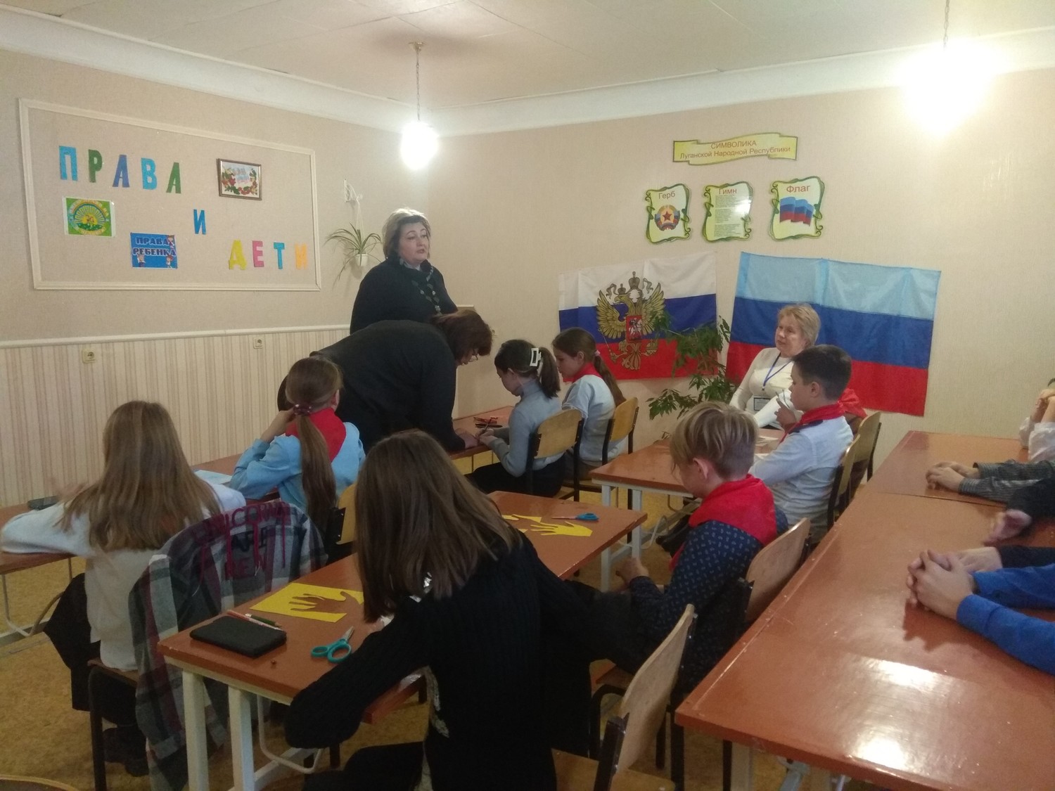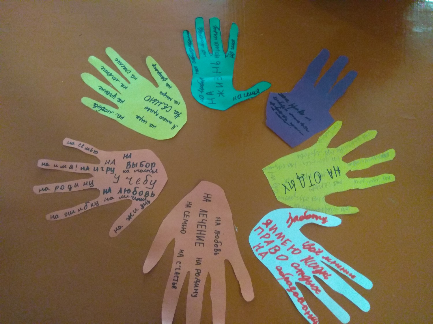 В преддверии этой даты 17 ноября 2022 года в ГУДО ЛНР «Ровеньковский детский центр научно-технического творчества» состоялось мероприятие с элементами игры «Права и дети» в рамках месячника правовых знаний. Задачами игры стали: воспитание правовой культуры, закрепление знаний обучающихся о правах и обязанностях. Мероприятие началось с Гимна Луганской Народной Республики и Гимна Российской Федерации. Открыла мероприятие директор учреждения Васильева В.В. Методист Шевченко М.Е. отметила важность понимания своих прав, умения ними пользоваться, не нарушая прав других людей. И как важно знать при этом еще и свои обязанности. Участниками игры стали обучающиеся кружков «Техно мир» (рук. Дегтярева М.В.) и «Шкатулка чудес» (рук. Каралкина Н.С.). И первое задание, которое выполнили кружковцы называлось «Право на имя». Далее ребята кружка «Техно мир» обсудили вопрос о том, какие бывают права. А ребята из кружка «Шкатулка чудес» нарисовали свои ладошки и вписали на них, на что они имеют право. Участники разобрали правовые ситуации, включающие правонарушения.