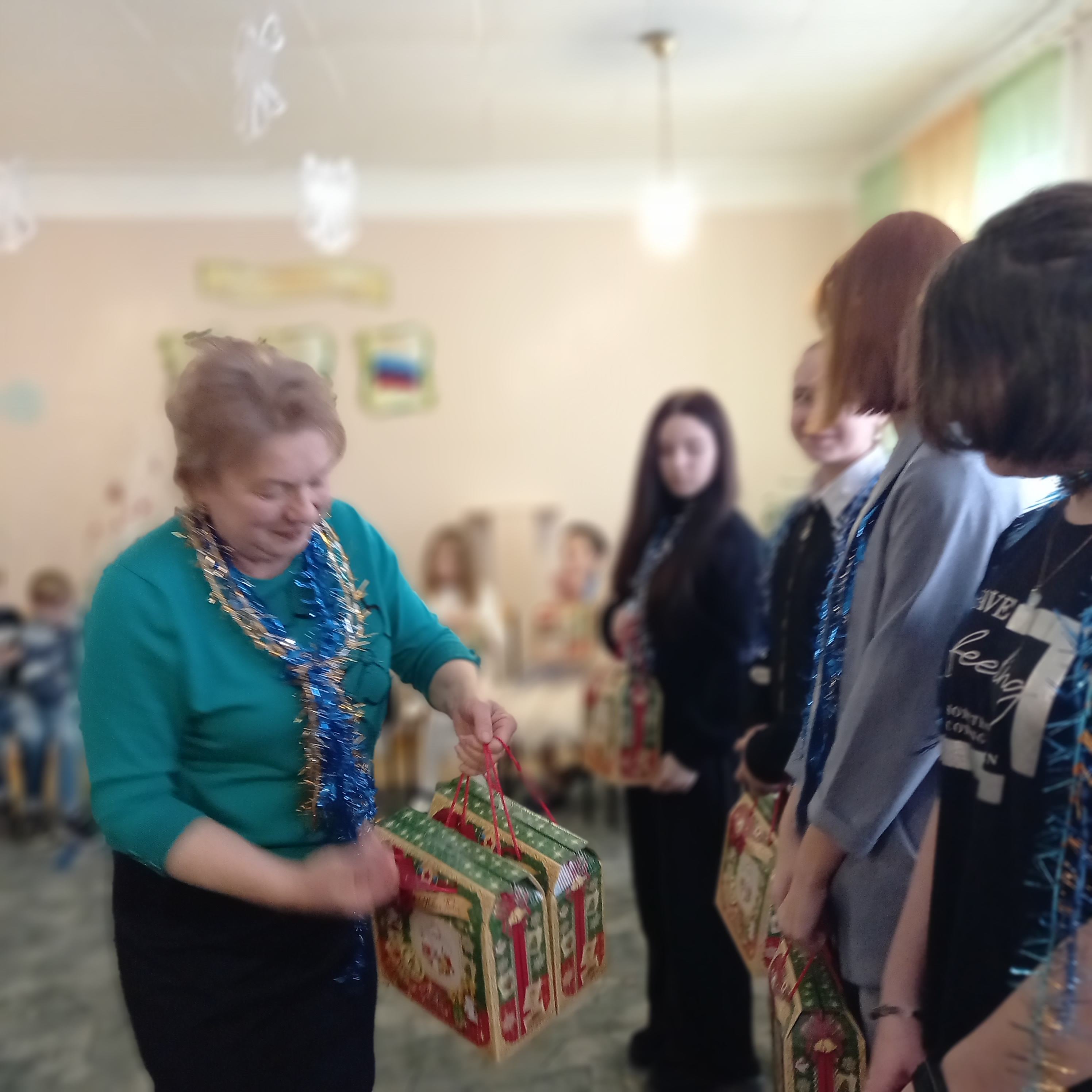 Директор Ровеньковского детского центра научно-технического творчества Васильева В.В. сказала в адрес ребят много добрых слов, пожелала всем мира, здоровья, провести весело и интересно новогодние и рождественские каникулы и вручила сладкие подарки.