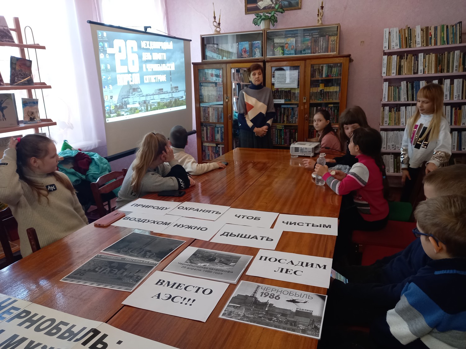 26 апреля 2023 года обучающиеся кружка «Техно мир» (руководитель кружка Дегтярева М.В.) посетили филиал № 1 ГУ ЛНР «Городская библиотека для взрослых им. Г. Сковороды», где было проведено мероприятие - экологический набат "Чернобыль: не гаснет памяти свеча".